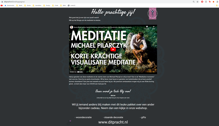 Mij werd gevraagd om voor een extern bedrijf (DitPracht) een landingspagina te maken. De pagina was bedoeld voor een actie die ze hadden. De reden dat wij (een extern bedrijf) deze opdracht kregen was omdat haar eigen webdeveloper niet het design kon maken die ze wilde.