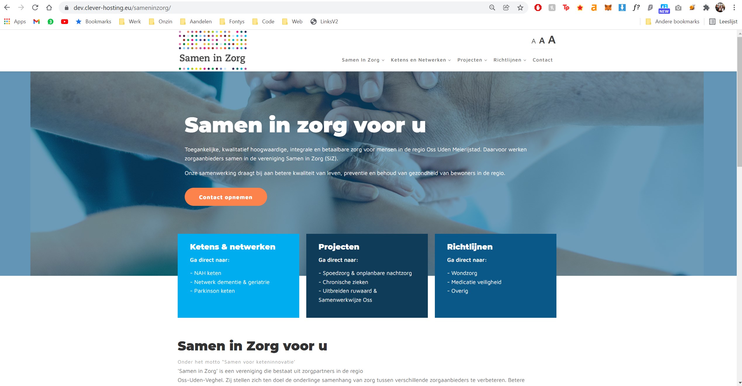 Ik heb één website gemaakt in Oxygen, namelijk de website voor een zorgketen genaamd “SamenInZorg”. De website is hier te vinden: https://dev.clever-hosting.eu/sameninzorg/ . Ik merkte wel dat ik steeds handiger werd in het oppakken van nieuwe page-builders / website builders, allemaal hebben ze ook ongeveer hetzelfde doel en het princiepe is hetzelfde. Vaak is het de eerste 2 dagen wel even zoeken waar alles zit, maar je leert het wel sneller.