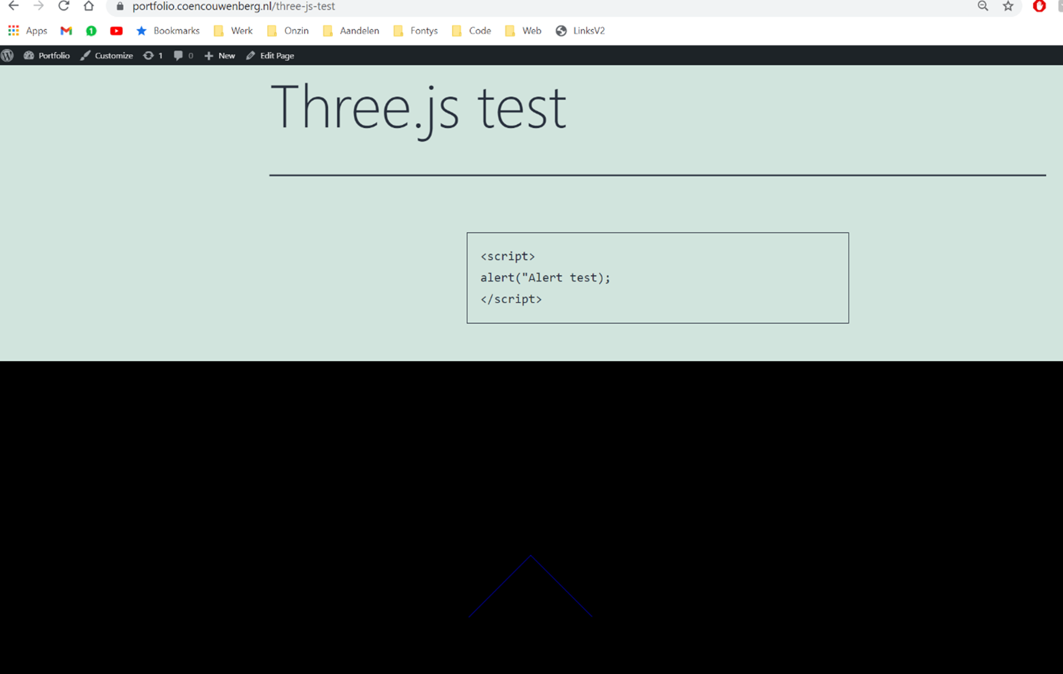 Na wat trial & errors was het me uiteindelijk toxh nog gelukt om Three.js werkend te krijgen op een WordPress pagina. Het was me uiteindelijk gelukt omdat ik via de back-end in de PHPMyAdmin Database de code rechtstreeks erin had gezet. Dit werkte niet op een andere manier omdat alles geëscaped werd. Het interactief maken van Three.js werkte alleen niet omdat het werkte via een blog Post en ik geen andere bestanden kon aanroepen zoals OrbitControls.